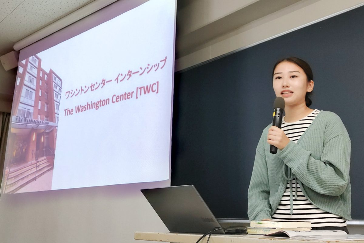 阿部さんは在学中、東海大学チャレンジセンター(東海大学チャレンジセンターの詳細はコチラ)の国際交流ボランティア組織「Tokai International Communication Club」(TICC)でリーダーを務め、また本学の留学制度を活用してアメリカのワシントンD.C.で4カ月間のインターンシップを経験しました。そして、2025年4月からは専門商社に就職し、新たなキャリアをスタートさせます。