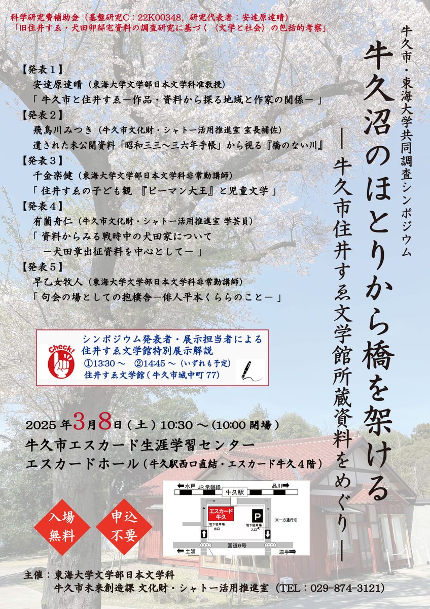 牛久市・東海大学共同調査シンポジウム「牛久沼のほとりから橋を架ける―牛久市住井すゑ文学館所蔵資料をめぐり―」