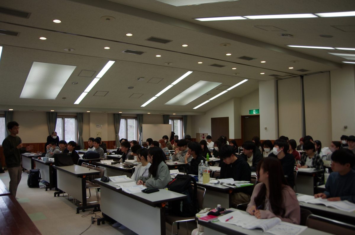 文学部歴史学科西洋史専攻では2025年4月5日(土)~6日(日)に、新入生研修会を合宿形式で実施しました。富士山の裾野、東海大学山中湖セミナーハウスに宿泊しながら、新入生に対して4年間の授業計画に関する解説や、教員免許など資格取得に関する解説を教員から行い、留学や各種語学、資格系授業の経験者である上級生の体験談や個別の質問タイムを通して、西洋史専攻でのこれからの大学生活の準備を1年生が行いました。