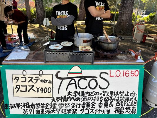 11月1日~3日に行われた建学祭にて、英語文化コミュニケーション学科有志の学生が「タコステ」を出店しました。