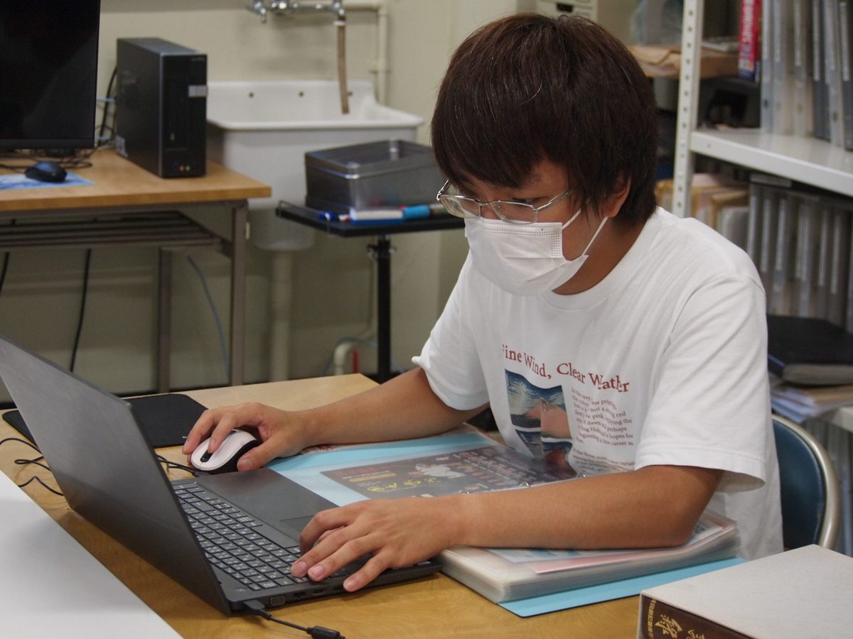 こうした重要な意義をもつ資料の整理作業に参加している3年生の小玉さんは、「歴史的価値のある史料の保存作業に参加できて楽しく、また感動するし、史料管理学演習で学んだ経験が活かせる」、と話してくれました。