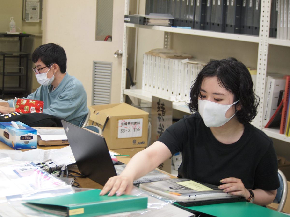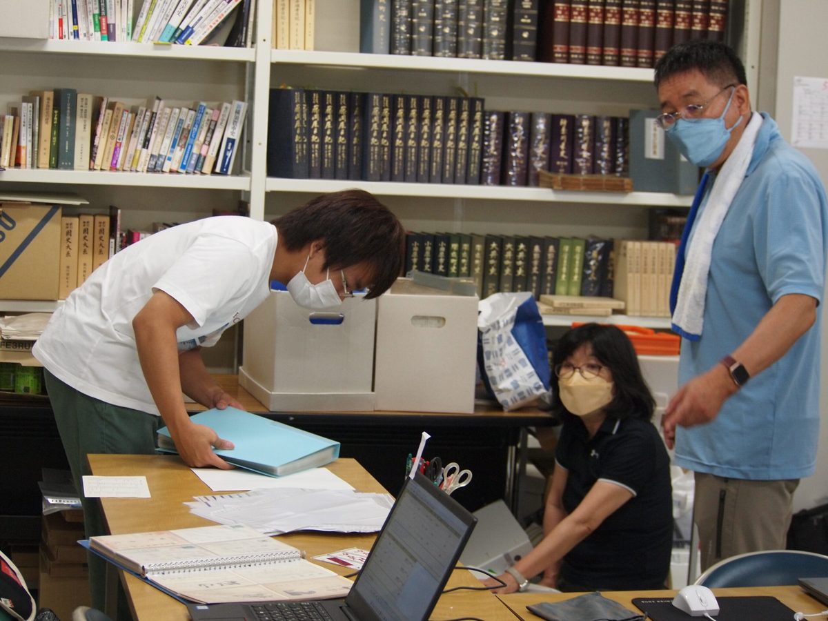歴史学科日本史専攻の「日本史情報処理」、「史料管理学演習」などの授業を担当している教育開発研究センター教授の馬場弘臣先生が中心となって進めている資料整理に、夏期休暇中の日本史専攻の学生や文学研究科史学専攻の大学院生が参加・協力しています。