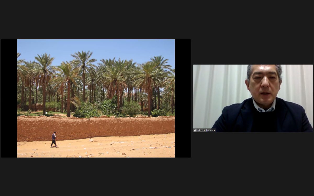 文学部文明学科では2月11日に、「知のコスモス」講演会「中東・北アフリカの乾燥地域で育まれた動物・植物・鉱物利用をめぐる在来知」をオンラインで開催しました。人間の発明した技術の発展とともに、自然はさまざまな問題に直面しています。本学部では、自然と人間の関係性を見つめ直す機会として、経験豊富なフィールド・ワーカーを講師に招き、世界各国の人々や社会課題などについて講演いただく「シリーズ 国家・自然・人間」を企画。第1回となる今回は、秋田大学大学院教授で文化人類学者の縄田浩志氏に中東・北アフリカの社会についてお話しいただきました。当日は、学生や教員、一般参加者ら約30名が参加しました。