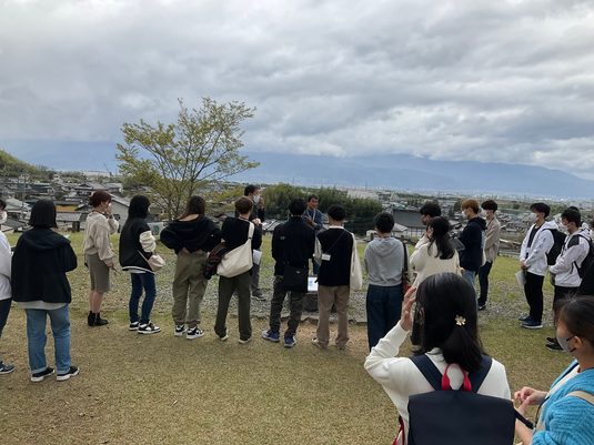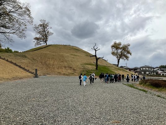 考古学専攻では、4月7日(金)に、山梨県にて新入生研修会を実施しました。新入生36名は、午前中には山梨県立考古博物館と近隣の古墳と墳墓の見学をし、午後は県立博物館を訪れました。
