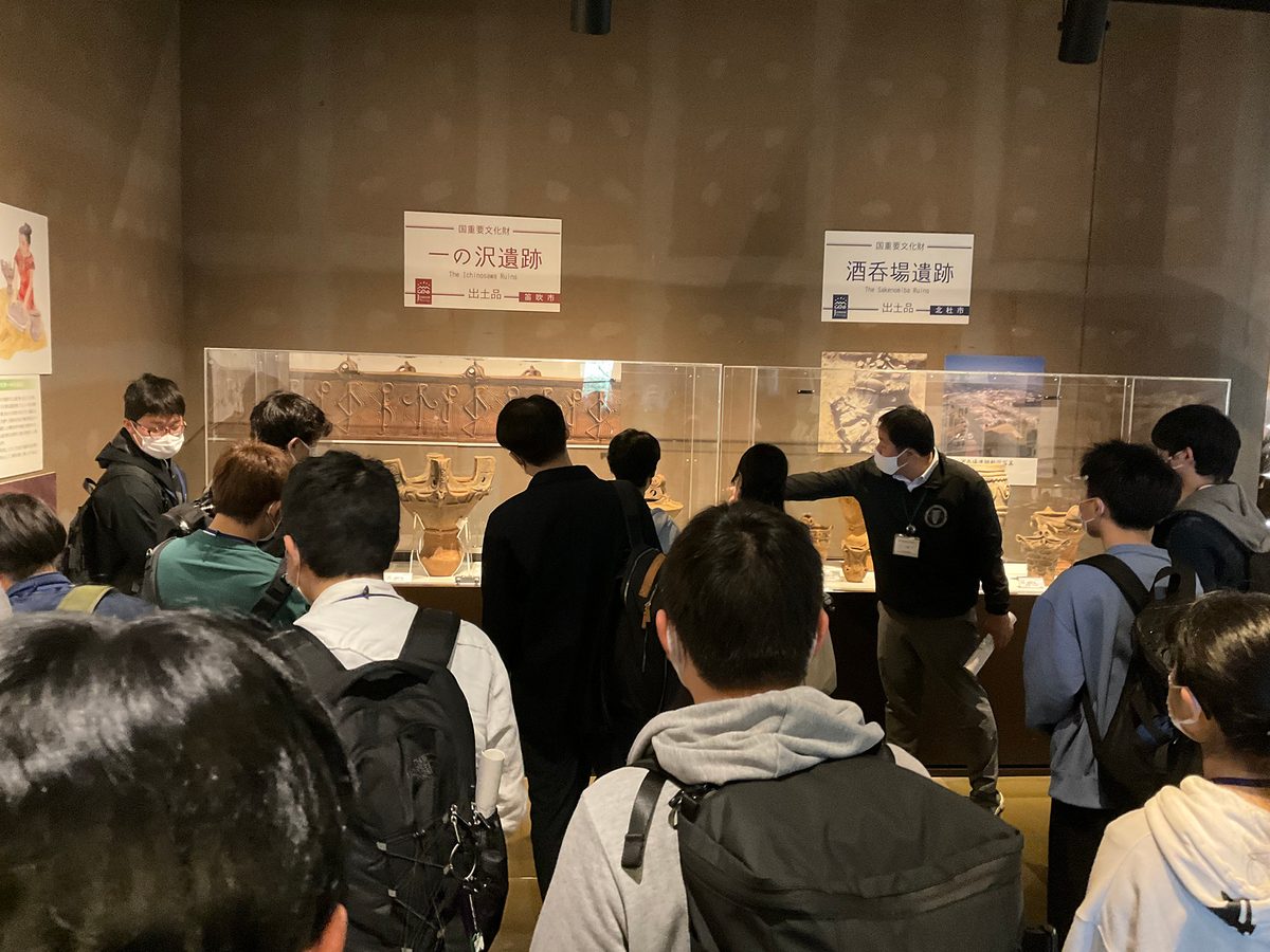 湘南校舎から大学のバスに乗って甲斐銚子塚古墳・大丸山古墳−考古博物館−上の平遺跡−曽根丘陵研修センター(お弁当)−山梨県立博物館−湘南キャンパスという旅程でした。考古博物館では学芸員の柴田亮平さんと一之瀬敬一さん(共に本専攻OB)にご案内いただき、非常に熱の入った解説を頂戴しました。心から感謝申し上げます。
