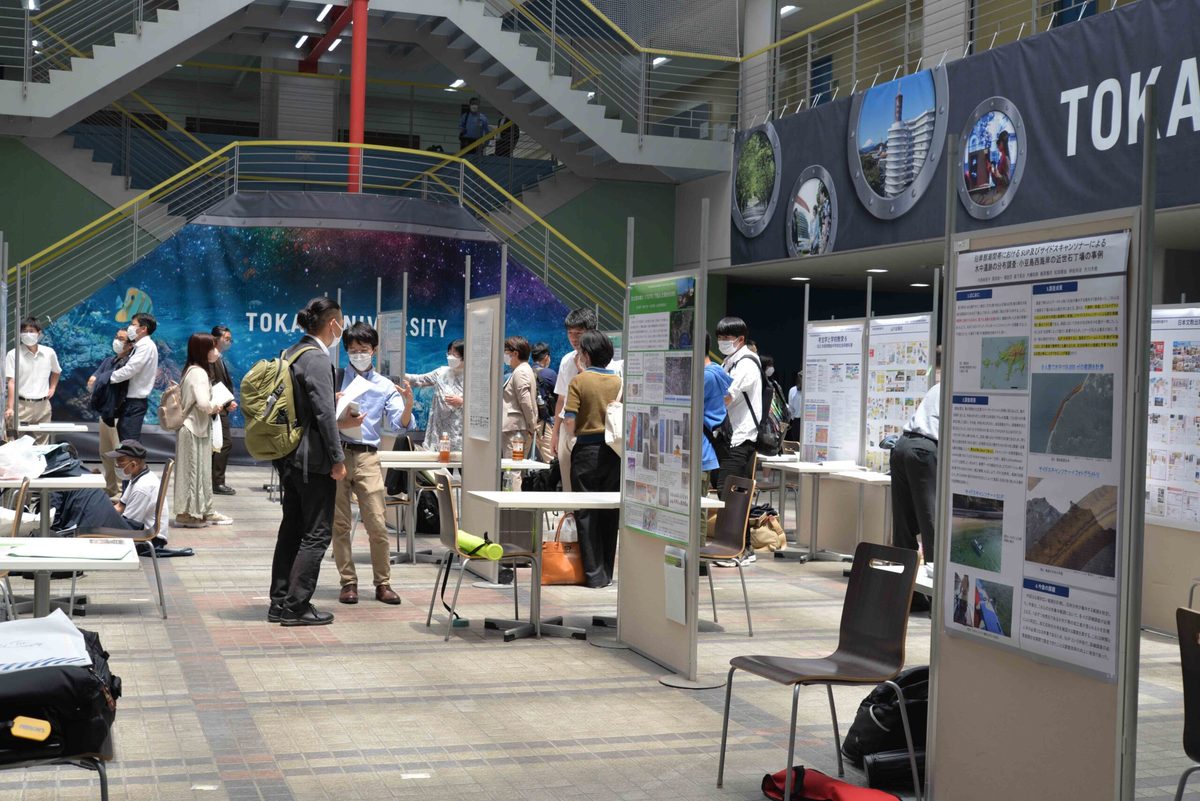 2日目には、会場を14号館に移して、全7会場にて、個人やセッション企画による口頭での研究発表が行われました。さらに、14号館地階ホールでは、ポスター掲示による研究発表(ポスターセッション)が行われました。ポスターセッションには、高校生の部門もあり、計10校から先生や高校生が参加してくれました。高校生参加者による交流会も開催されました。