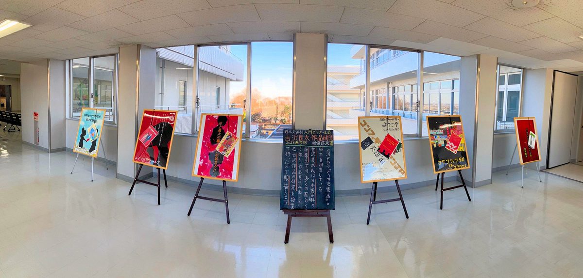 日本文学科では、春学期の「入門ゼミナールB」において、グループワークで作成したポスターと展示を古沢良太先生の特別授業に合わせて学内展示しています。