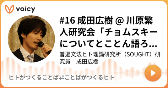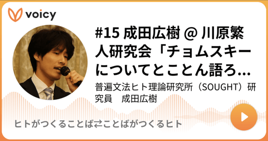 最近のエピソードでは、慶應義塾大学言語文化研究所の川原繁人教授の研究会にて「チョムスキーについてとことん語ろう!」というテーマで話されている内容をお送りしています。