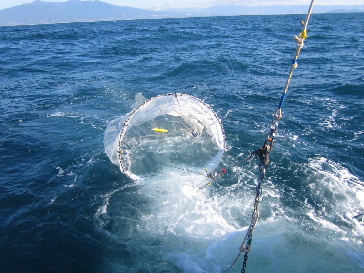 海産ミジンコ類(枝角類)は、春から夏にかけて爆発的に増殖し、大量に出現する場合があることから、海洋生態系における重要性が指摘されています。しかし、海産ミジンコ類の食性に関する情報は断片的であり、それらが食物網においてどのような役割をもっているのかは明らかではありませんでした。本研究は、小型舟艇「北斗」を用いて2種のミジンコ類(ウスカワミジンコ・トゲナシエボシミジンコ)を採集し、それらの消化管に含まれる餌生物の遺伝子をDNAメタバーコーディングと呼ばれる手法により網羅的に解析しました。さらに、生物の栄養段階や炭素源の指標となる窒素・炭素安定同位体比を測定し、食物網における海産ミジンコ類の生態学的役割を明らかにしました。本研究により、海産ミジンコ類は他の植食性プランクトンと比べて低い栄養段階に位置することが明らかになりました。また、濾過摂食をおこなうウスカワミジンコは、緑藻やシアノバクテリア、粒子付着性細菌などの微細な餌を取り込んでいる可能性が示唆され、種による食性の違いが明らかになりました。本研究は、駿河湾海洋生態系研究プロジェクトSURUME(SUruga bay Research for Understanding Marine Ecosystems)の一環として行われました。