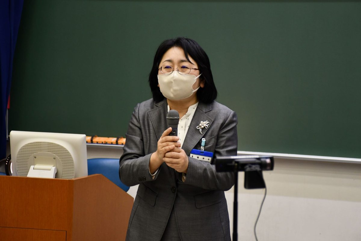 続いて実施した同窓会では、森谷英昭副会長が、「今日は学生時代を思い出して語り合うとともに、先輩と後輩の交流を深めて大いに楽しみましょう」と開会を宣言。糠信会長が、「この会が皆さんにとって縦横のつながりをつくる機会になればうれしく思います」と語りました。その後、次期会長に決定した本学科の岡部春香講師が、「学科の教員という立場を生かし、卒業生と在学生、教員の架け橋として、一人ひとりにとってよりよい会になるよう精一杯努力していきます。本日の同窓会をきっかけとして、新しい交流の輪が広がることを願っています」とあいさつ。今泉郷子学科長は、「学生が社会に出てからたくましく成長していくためには、先輩たちの後押しが必要です。学生たちの将来のためにも、ぜひ同窓会を発展させてください」と激励しました。