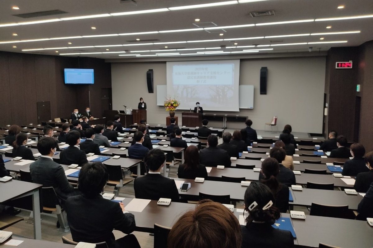昨年4月に開講した「看護師特定行為研修」(特定の医療行為について医師が作成した手順書に基づいて診療の補助を行う看護師を育成する研修)は、4期生17名が修了。本センターの横田弘子所長(医学部付属病院副院長)が一人ひとりに修了証を授与し、「医師の働き方改革などを背景として、特定行為ができる看護師への期待が高まっています。より質の高い医療・看護の効率的な提供に向けて、さらに研鑽を積んでください」と激励しました。
