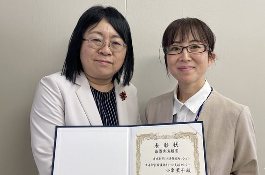 昨年4月に開講した「看護師特定行為研修」(特定の医療行為について医師が作成した手順書に基づいて診療の補助を行う看護師を育成する研修)は、4期生17名が修了。本センターの横田弘子所長(医学部付属病院副院長)が一人ひとりに修了証を授与し、「医師の働き方改革などを背景として、特定行為ができる看護師への期待が高まっています。より質の高い医療・看護の効率的な提供に向けて、さらに研鑽を積んでください」と激励しました。