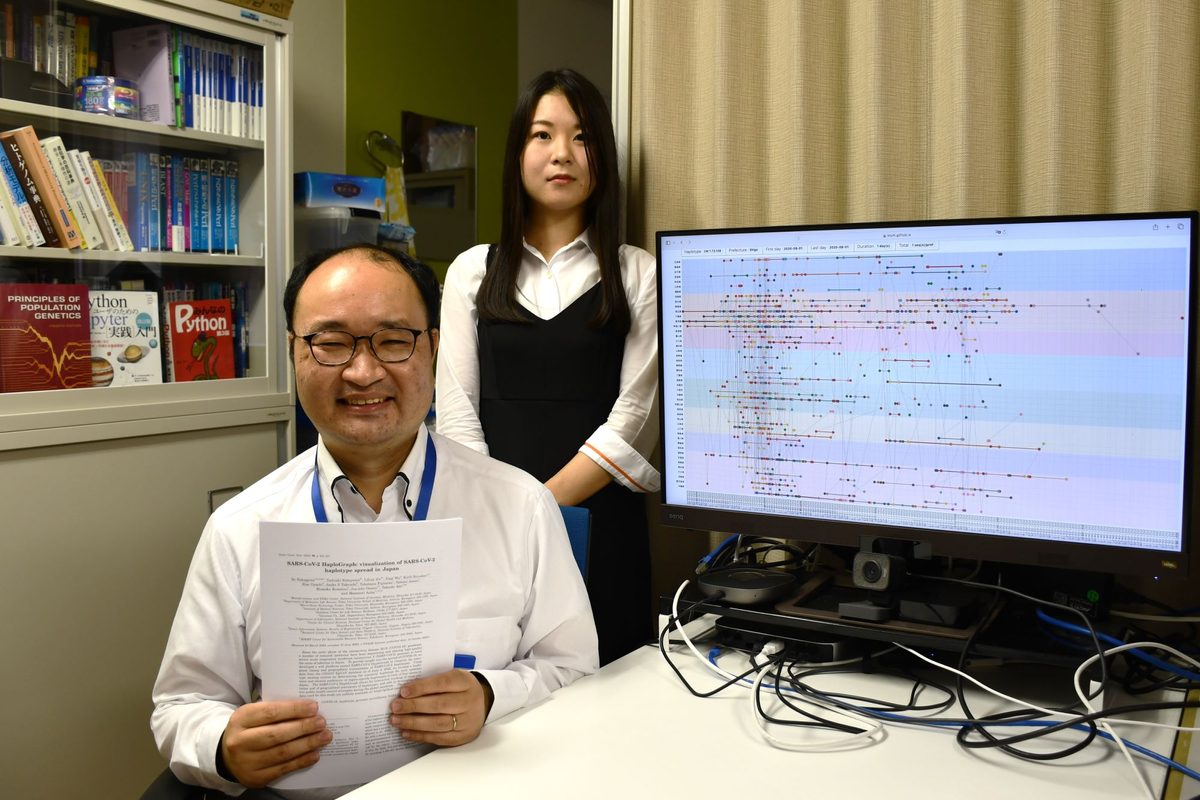 中川准教授の指導を受けてこの研究に取り組んだ大谷内梨聖さん(大学院医学研究科医科学専攻2年次生)は、「未知の感染症の世界的大流行という未曽有の事態の中で、原因となるウイルスの研究に携われたことはとても意義深く、貴重な経験でした」とコメント。中川准教授は、「国立遺伝学研究所生命情報・DDBJセンターの特命准教授として研究グループに加わり、“日本国内における新型コロナウイルスのゲノム情報に基づいた詳細な解析については、自分たちがやらなければ”という思いを持って、チームで解析に取り組みました。国内でのコロナの流行伝播の状況が、日本遺伝学会の学会誌という誰もが閲覧できる媒体に掲載され、さらにその内容を評価していただいたことを大変うれしく思います。日本国内の新型コロナウイルスのゲノム情報が、極めて高精度かつ網羅的に利用できるからこそ可能になった解析であり、関係者のみなさまにも御礼申し上げます」と話しています。