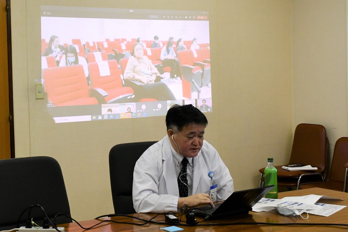 中心になって企画・運営した診療技術部臨床工学技術科の西原英輝科長補佐は、「今回はCOVID-19の治療に使われる機器を対象としました。BMEだけでなく看護師やメディカルテクニシャンらも参加したため研修員同士の情報共有ができ、私たちもタイの医療現場の状況を知ることができました。研修員からは、“機器の保守管理や使用方法はもちろん、COVID-19の治療に日本のCEがどのようにかかわっているかがわかり、大変有意義でした”といった感想をもらっています。日本のCEが歩んできた道のりを、タイのBME制度の確立に役立ててもらえればうれしい。双方の医療の充実を目指して今後も事業を継続したい」と話しています。