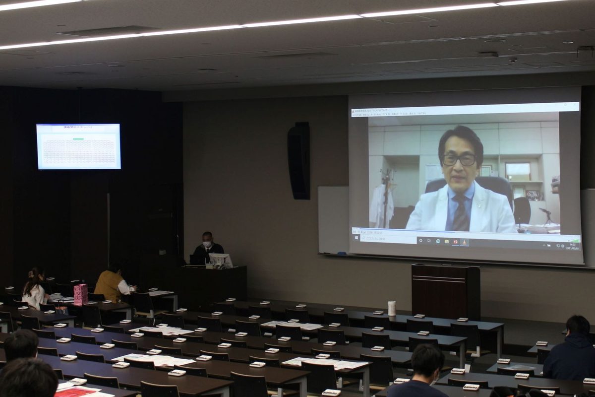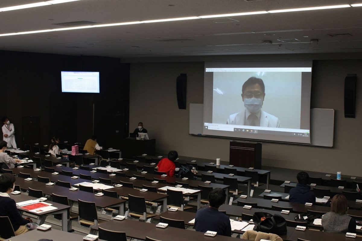 初めに、教員からのビデオメッセージを上映。坂部貢医学部長(副学長・医系担当、基礎医学系生体構造機能学)は、「国家試験の受験を迎えられたことこそ、皆さんが頑張ってきた証です。自分の力を信じ、合格した自分や医師になった姿を想像して、前向きな気持ちで挑んでください。私も皆さんと一緒に受験する気持ちで応援します」と激励しました。川田浩志学科長(副学部長、内科学系血液・腫瘍内科学)は、元大リーガー・イチロー選手の“小さいことを積み重ねるのが、とんでもないところへ行くただひとつの道”との言葉を引用し、「最後まで今までと同じように努力を続けてください。新型コロナで不安になるのは全国の受験生が同じです。ピンチはチャンスと考えて頑張ってほしい」とエールを送りました。