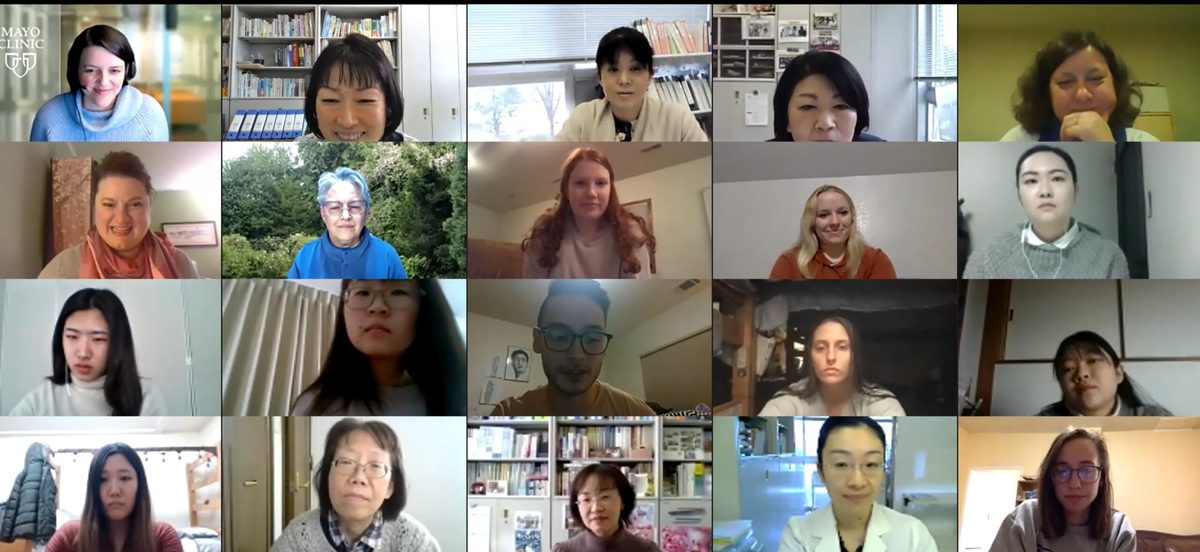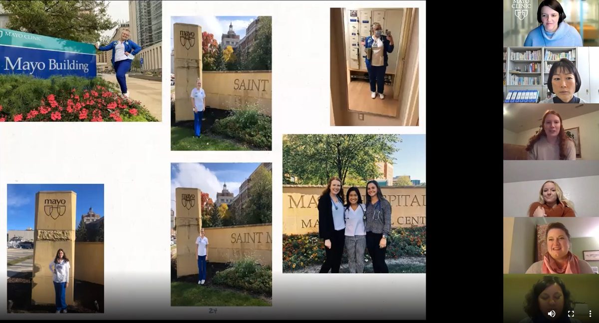 医学部看護学科では1月26日に、「メイヨクリニック・バーチャルツアー」をオンラインで実施しました。本学科では国際性のある看護職を養成するための教育の一環として、1995年から先進的な医療で世界的に有名なアメリカ・ミネソタ州のメイヨクリニックと幅広い文化・学術交流を展開しています。今回の催しは、新型コロナウイルス感染症(COVID-19)の拡大により、選択科目「国際看護基礎演習B:メイヨ」の一環として例年現地で実施していた「メイヨクリニック研修」が中止となったため、現地研修に替えて実施したものです。本学科の学生や教員、同クリニックの看護師、アイオワ州にあるルーサーカレッジの看護学生ら約30名がWEB上で交流しました。