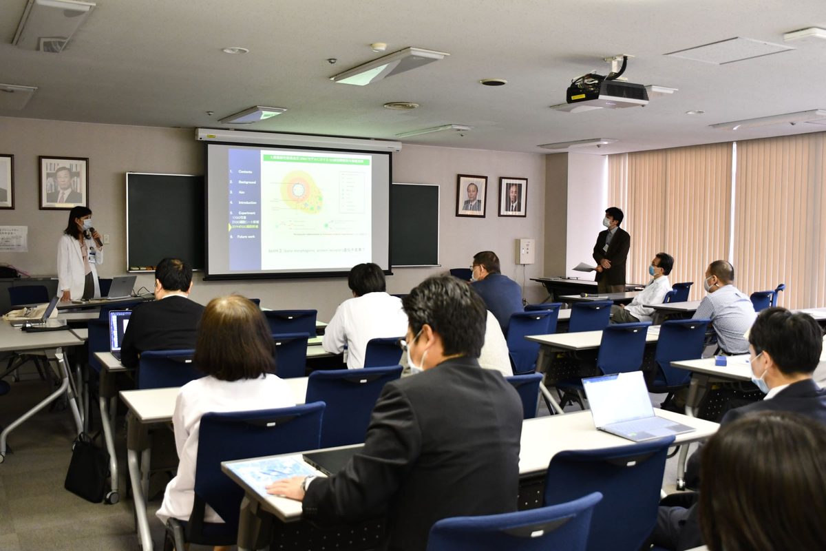 総合医学研究所が3月5日に伊勢原キャンパスで、「第24回公開研究報告会」を開催しました。この報告会は、本研究所の所員が1年間の研究成果を共有するために毎年同時期に実施しているものです。今回は7名が講演し、教職員や大学院生ら約60名が参加。新型コロナウイルス感染症対策を徹底して行いました。