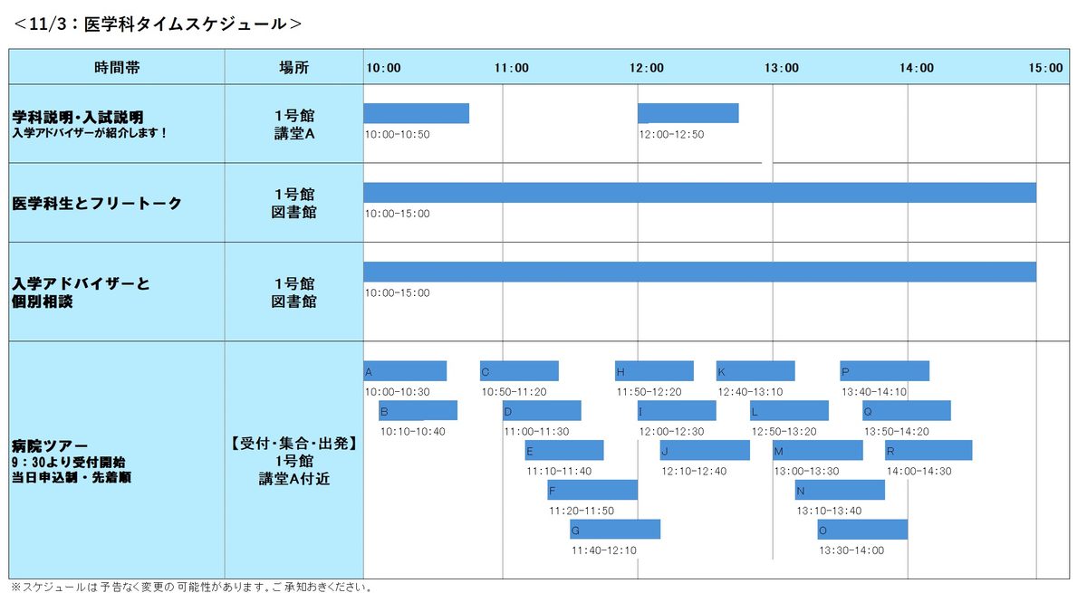 ▶受付場所:【医学科】1号館2階講堂 【看護学科】3号館1階