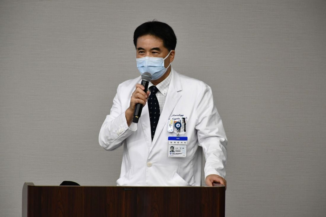 初めに、本センターの永田栄一郎センター長(医学部医学科教授)が開催の趣旨を説明。「認知症に関する正しい知識を持っていただくとともに、皆さんの交流の場になれば幸いです」とあいさつしました。