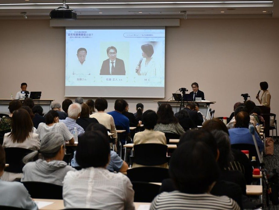 第2部では、佐藤教授と共に変形性膝関節症の患者さんが登壇。診断に至る経緯やヒアルロン酸治療の選択理由、治療頻度、治療後の膝の状態といった体験を振り返り、「好きなサッカーを長く続けたいので、主治医と相談しながらライフスタイルに合わせた治療法を賢く選択したい」と語りました。参加者からは、治療を選択する際の留意点や、ヒアルロン酸の関節投与時の痛み、副作用といった質問が寄せられ、登壇者が丁寧に回答しました。