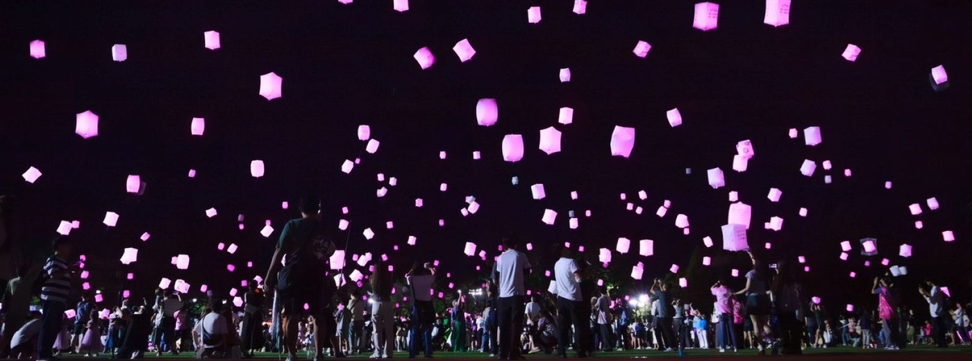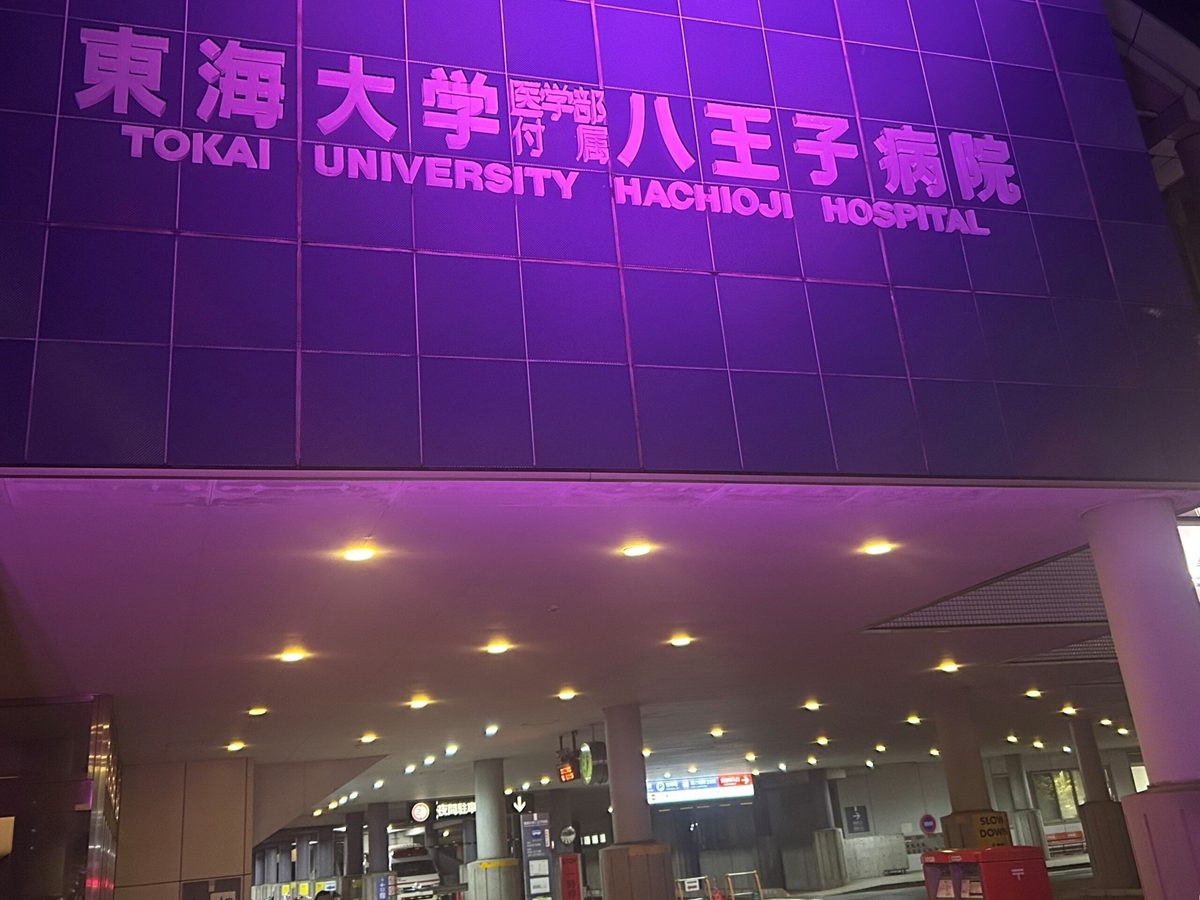 9月13日には、アローレ八王子スポーツクラブ(特定非営利活動法人はちきたSC)主催の「はちスポ夏祭2025」との共同企画として、市内の富士森競技場で開かれた「スカイランタン・イベント」に協力。鈴木副院長の掛け声で、同運動のシンボルカラーであるピンクのランタン373基を夜空に飛ばしました。10月4日に八王子えきまえテラスで開かれた「はちおうじピンクリボン de マルシュ」にはピンクリボン啓発ブースが設置され、当院の職員らが乳がん検診や乳房の自己触診の意義を説明。さらに、10月の1カ月間、病院の建物をピンクに彩るライトアップも行いました。