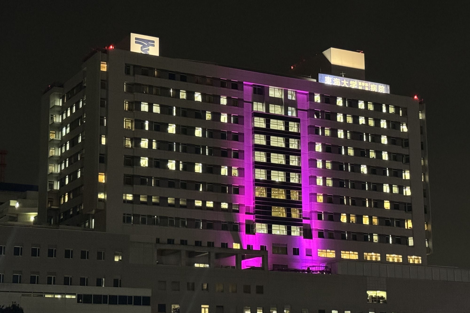 伊勢原キャンパスの医学部付属病院で10月15日から22日まで、「ピンクリボンフェスティバル」を開催しました。当院は「地域がん診療連携拠点病院」に指定され、神奈川県西部地域におけるがんの診断・治療の中心的役割を担っています。このイベントは、世界的な乳がん啓発運動である「ピンクリボン運動」推進月間の10月に、乳腺外科が中心になって毎年実施しているものです。今回は企業の協力を得て、がんの治療による髪や肌などの変化をカバーするアピアランスケア(外見ケア)の体験プログラムを企画し、延べ約100名が参加。付属病院を同運動のシンボルカラーであるピンクに彩るライトアップも行いました。