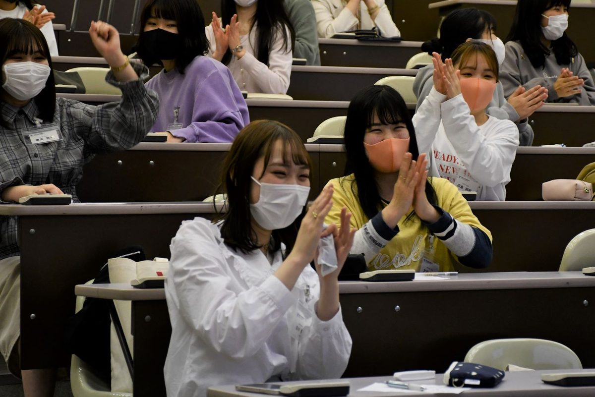中心になって企画した笠原涼花さん(4年次生)は、「心からの歓迎の気持ちを込めて運営しました。特に2年次生は、先輩はもちろん学生同士も顔を合わせる機会が少なかったため、不安が大きかったと思います。コロナ禍で学生生活にも制約がありますが、上級生としてできる限りのサポートをしたい」と話していました。2年次生は、「研修会を開いていただき感激しました。先輩とつながることができて本当にうれしい。あらためて“大学生になった”という実感がわきました」と笑顔。1年次生は、「先輩方のおかげで楽しいひとときを過ごし、学生生活への期待が高まりました。勉学はもちろん学生会やサークル活動にも積極的に参加し、充実した学生生活を送りたい」と話していました。