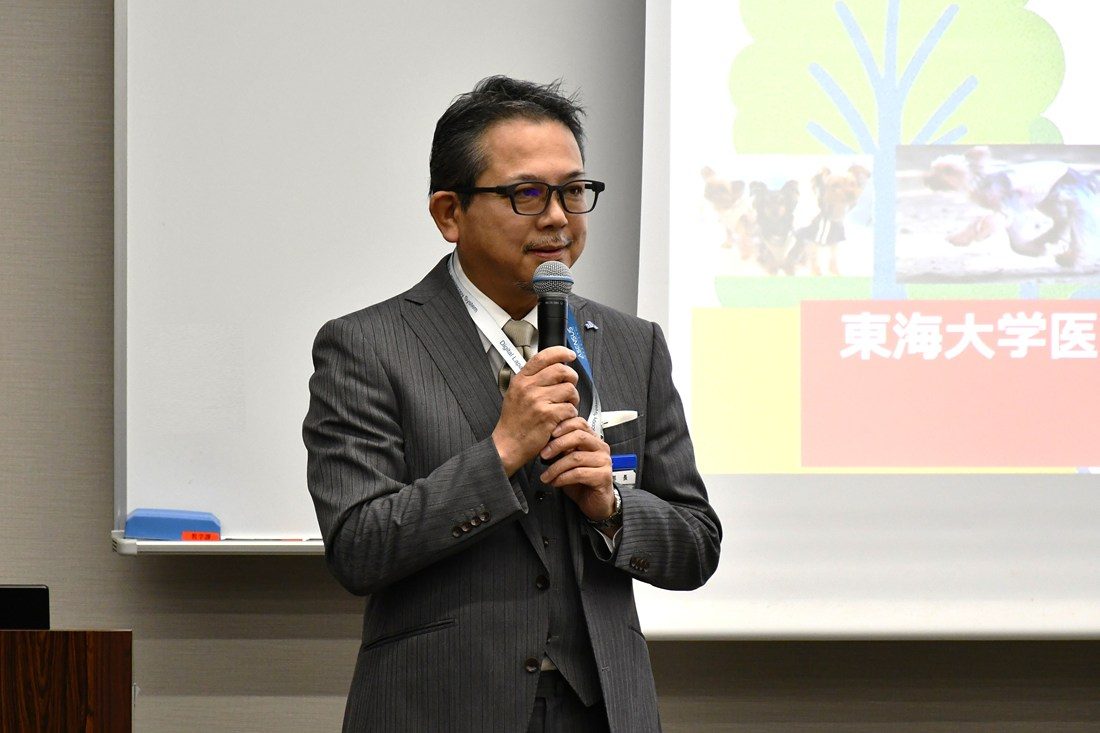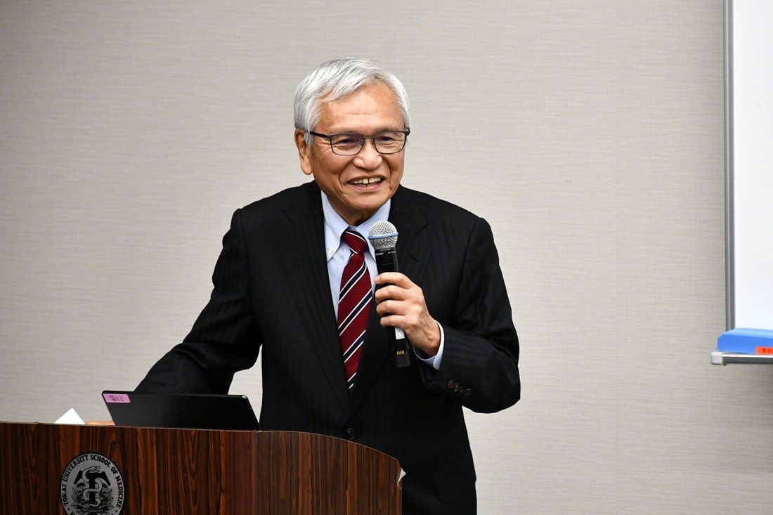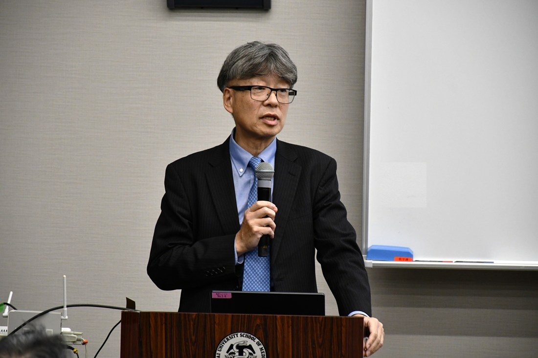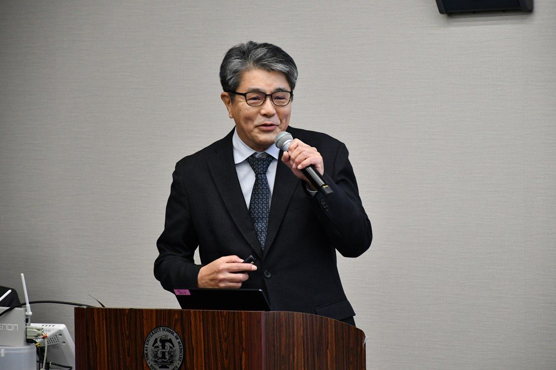 初めに、大上研二医学部長が登壇。「IBDの患者さんは増加傾向にあり、社会全体で疾患への理解を深めていくことが求められています。この公開講座が皆さまにとって有益な学びとなるよう願っています」とあいさつしました。