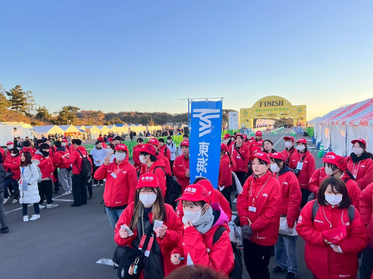 医学部付属病院機関(付属病院、付属八王子病院)の医療従事者と医学部の学生、教員ら84名が、12月7日に神奈川県大磯町を中心に開催された「第20回湘南国際マラソン」に救護班として参加。ボランティアで運営をサポートしました。本学では第5回から協力団体となり、医学部付属病院が中心となって救護活動を支援しています。
