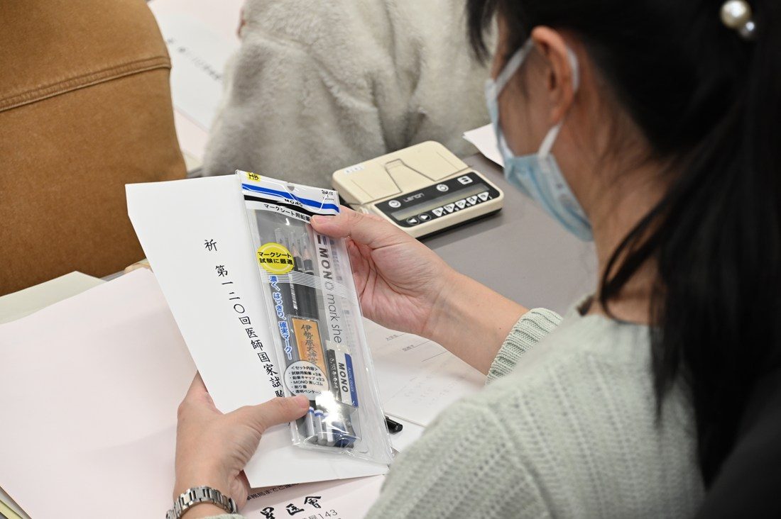 医学部医学科同窓会「星医会」からは、学生一人ひとりに合格祈願のお守りなどが贈られ、同会の谷口佳浩会長が、「皆さんの合格を祈願し、伊勢原大神宮にお参りしてきました。皆さんは卒業試験を乗り越えて、国家試験の日を迎えようとしています。6年間頑張ってきた皆さんの力は本物だと信じております。ぜひ自信をもって本番に臨んでください」とエールを送りました。なお、合格者は3月16日に発表されます。