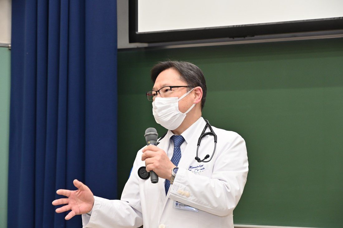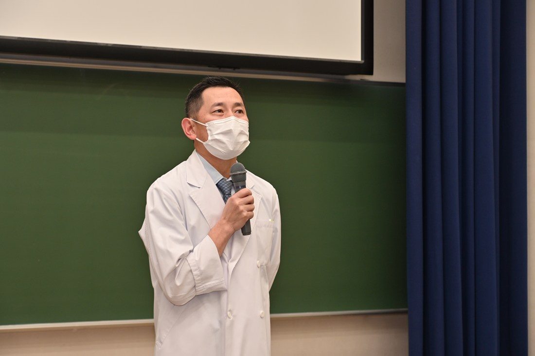 また、メディカルサイエンスカレッジ伊勢原教育計画センター長の濵田昌史教授は、「皆さんが入学された2020年4月は、新型コロナウィルスの感染拡大に伴う緊急事態宣言が発令中でした。この6年間、皆さんはさまざまな困難を乗り越えてこられたわけです。国家試験の会場では、これまでにない緊張感に襲われるでしょう。しかしそれは、すべての受験生が同じです。これまで十分に努力してきたことを信じて、落ち着いて実力を出し切ってください」とエールを送りました。さらに、医学部副学部長の川田浩志教授は、「加湿や睡眠の確保などにも心を配りながら体調管理を万全にしてください。直前講習の内容も振り返り、気を抜かずに本番を迎えてください」と呼びかけました。