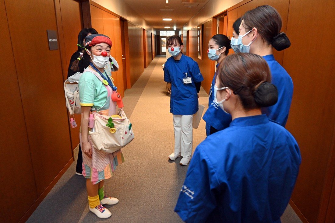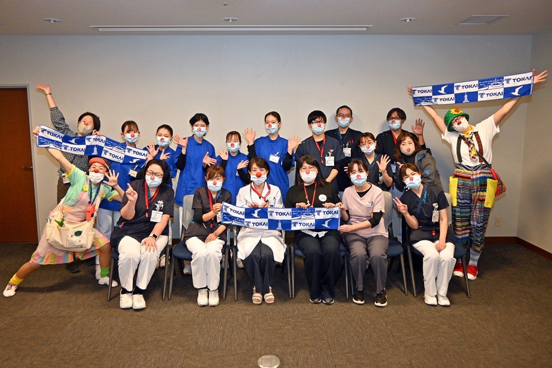参加した看護学科2年次生は、「将来は小児科勤務を志望していますが、子どもたちとコミュニケーションを取る方法についてクリニクラウンの方の姿を見て非常に勉強になりました」とコメント。井上教授は、「日本クリニクラウン協会とは約10年前からコンタクトを取っていましたが、感染症の流行などがあり、今回初めて訪問していただけて本当にうれしく思います。子どもたちには入院中でも楽しい思い出を少しでもつくってもらい、保護者の方には本病院に“子どもを預けてよかった”と思っていただけるよう今後も連携を続けていきたい」と語っていました。