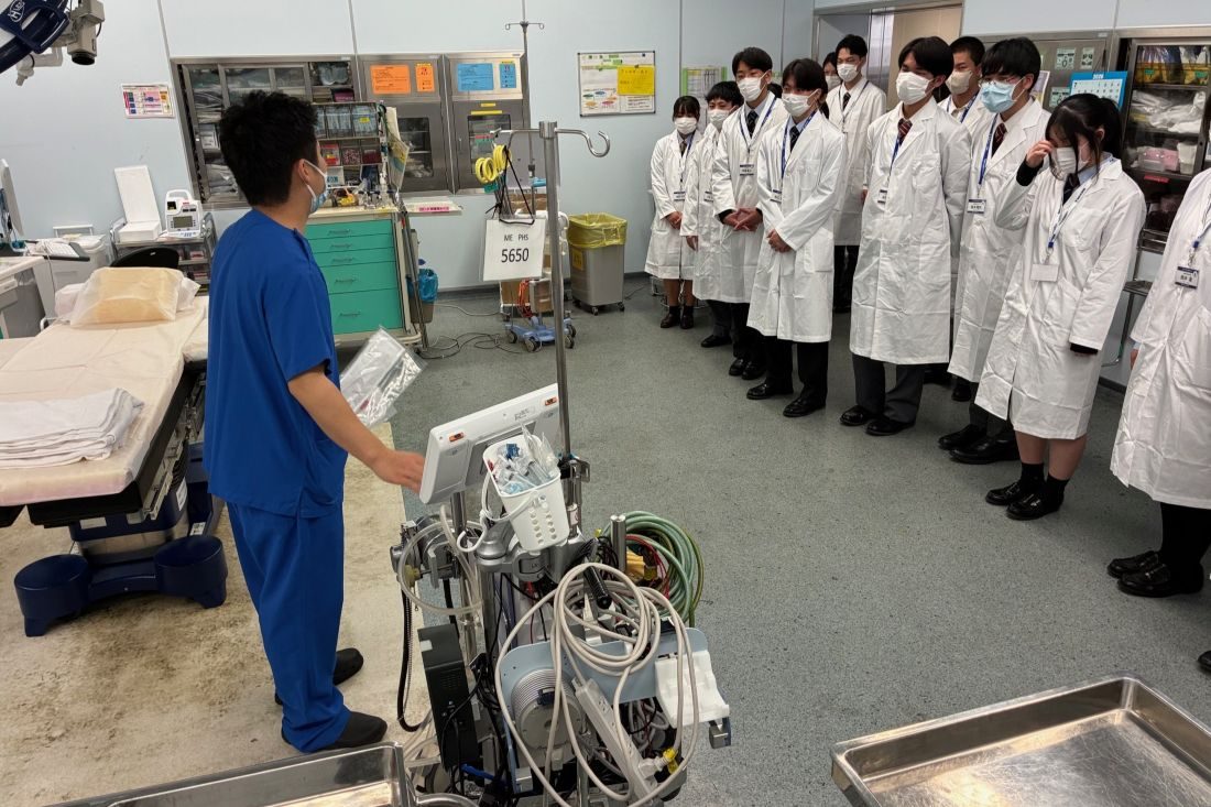 当日は、吉川隆博副医学部長(看護学科教授)によるオリエンテーションに続き、本病院救命救急科の守田誠司診療科長(医学科教授、本病院高度救命救急センター所長)が登壇。「医療を支える多様な専門職の仕事を、実際の現場で体験的に学ぶ機会です。ぜひ皆さんの進路選択に役立ててください」とあいさつしました。