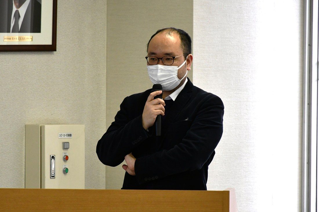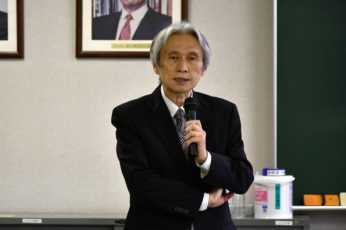初めに、稲垣豊所長がプログラムの趣旨を説明し、「今回は4名の報告に加え、今年度で定年を迎える松阪泰二先生に特別講演をお願いしました。長年にわたり本研究所の運営に尽力するとともに多くの研究実績を上げた松阪先生から研究や総医研の歴史をお聞きし、今後の糧としたいと思います」とあいさつしました。