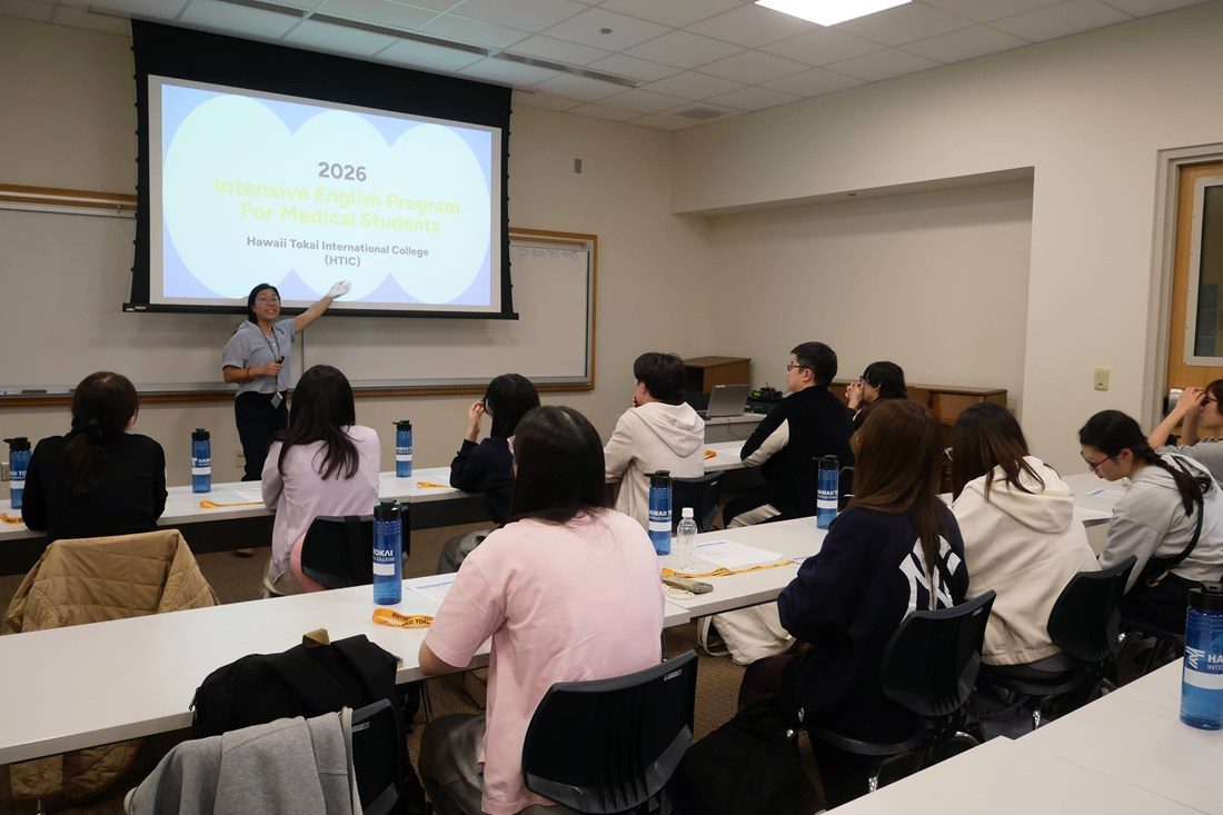 医学部医学科の学生が3月2日から8日まで、「ハワイ英会話集中プログラム」(Intensive English Program for Medical Students)を受講しました。このプログラムは、グローバルな視点を養うとともに、英語によるコミュニケーションスキルの修得や医学英語へのアプローチ、海外での医療活動の動機付けを図ることを目的として、ハワイ東海インターナショナルカレッジ(HTIC)を拠点に展開しています。今回は、本学科の1年次生から3年次生8名と神戸大学の医学部生3名の合計11名が参加し、本学科から2名、神戸大から1名の教員が引率しました。