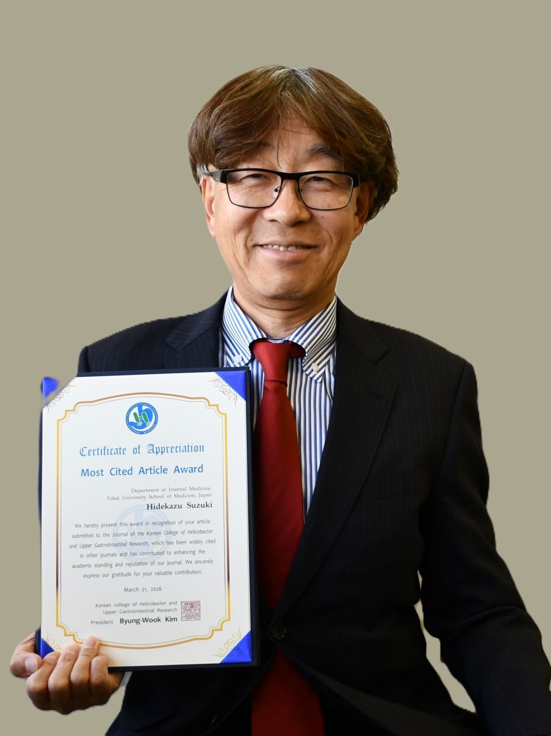 医学部医学科の鈴木秀和教授が韓国ヘリコバクター・上部消化管学会で「Most cited article award」を受賞しました