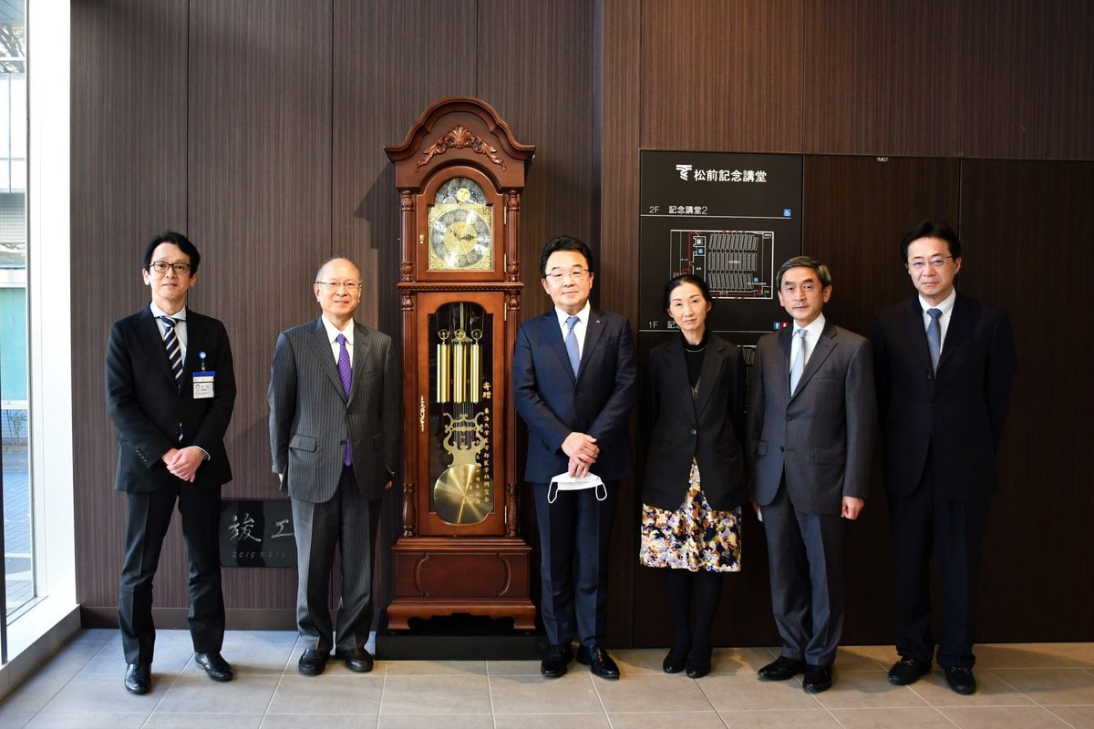 医学部医学科同窓会「星医会」からこのほど、伊勢原キャンパスの医学部にホールクロックが寄贈されました。星医会の創立40周年を記念して贈られたものです。11月24日には、ホールクロックを設置した本キャンパスの松前記念講堂1階で贈呈式が行われ、多くの教職員が参加しました。