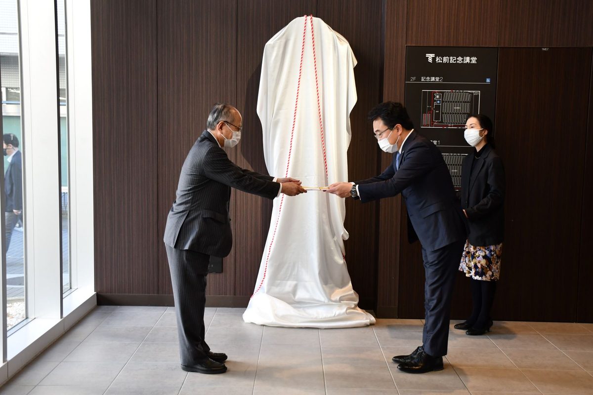 最後に森学部長が、「素晴らしい時計をいただきありがとうございます。学生はもとより、教職員にとっても大きな励みになると思います。40年という時を刻んできた星医会の、4000名をこえる会員の皆さんのお気持ちを大切にいただき、医学部医学科、看護学科をはじめ東海大の発展につなげていければと思っています」と感謝の言葉を述べました。