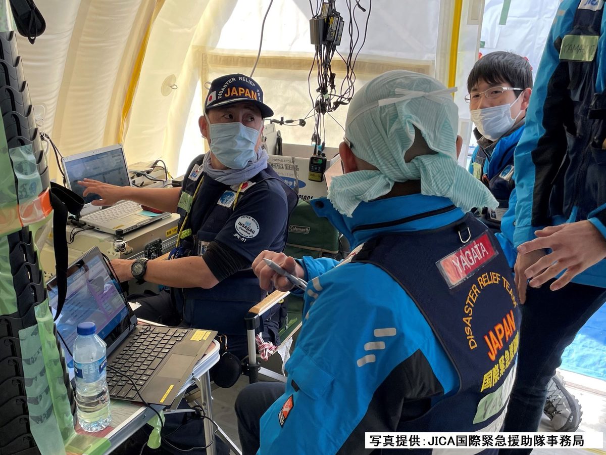 医療チームは、カフラマンマラシュ県近隣のガズィアンテプ県に滞在。施設の破損や医療スタッフの不足により診療活動ができなくなった公立病院の機能を維持するため、学校の校庭に設置されたテントで地域住民に対する診療を行いました。看護師隊員として派遣された大山准教授は情報通信に関する知識を生かし、電子カルテシステムの管理やメンテナンス、無線LANのコントロールをはじめ、統計資料の作成や分析、報告業務を担当。チームのメンバーが安心して診療に集中できる通信環境の維持に努めました。 大山准教授は、これまでも国際緊急援助隊のメンバーとして自然災害などで被災した世界各国の地域で活動してきました。「緊急援助隊の一員として貢献できるのは、国際支援に対する重要性を認識し、快く送り出してくれる大学と学科の先生方の理解と協力のおかげです。国際支援に当たっては、派遣要請があった国の考えを尊重し、何をどこまで期待されているのかを理解した上で、自立の妨げにならないサポートを提供することが重要です。また、チームの一員として、与えられた役割を果たすためのスキルと強い意志も求められます。学内の皆さんの協力のおかげで国際支援の貴重な機会をいただいていることをしっかりと認識し、そうした現地での体験や学びを学生たちに伝えるとともに、教育や研究に生かしていきます」と話しています。