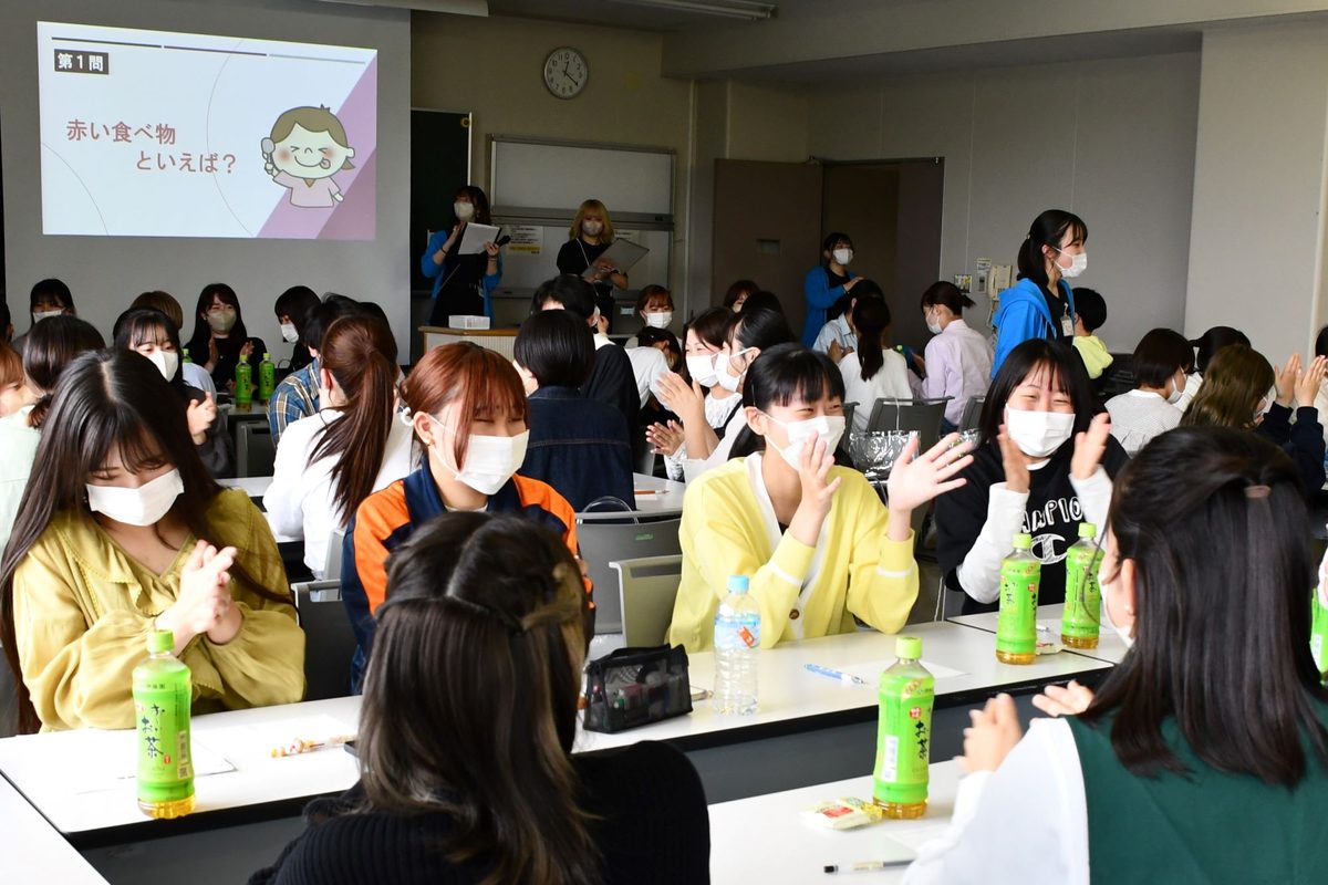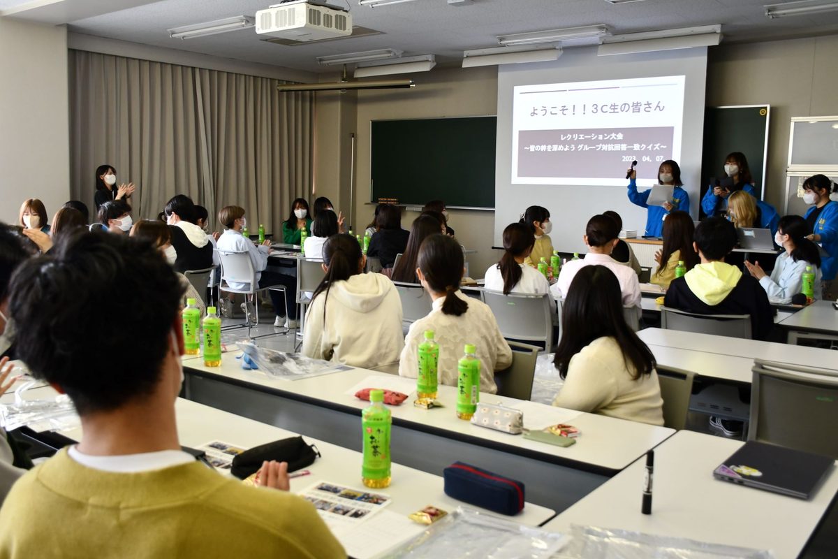 中心になって企画した3年次生の佐藤千爽さんは、「新型コロナウイルス感染症染対策に留意しながら、新入生同士や先輩、先生方とできるだけ親しく語り合い、楽しんでもらえるイベントにしたいと考えました。同じ学科で学ぶ仲間として学年を超えて交流を深め、共に充実した学生生活を過ごせるよう努めたい」とコメント。新入生は、「履修登録や試験、課題提出の際に気をつける点などを詳しく説明してもらったり、実習で着るユニフォームを見せてもらったりして、“いよいよ看護学生として学ぶ日々が始まる”という実感が沸きました」「クイズが楽しくて盛り上がり、友達がたくさんできました。企画してくださった先輩たちに感謝します」と笑顔を見せていました。