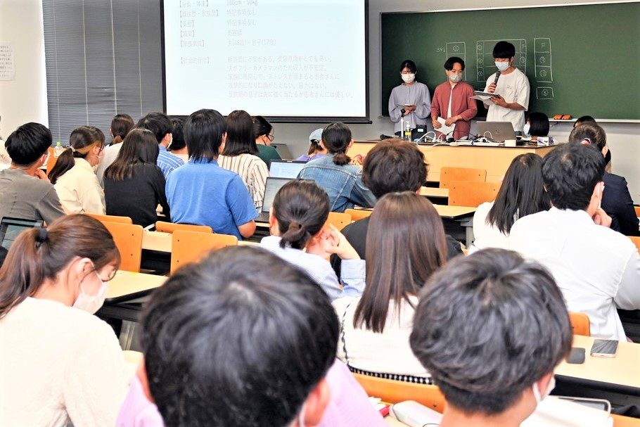 菅野智美さん(健康学部3年次生)は、「患者さんの日々の生活に目を向け、医療職者とは違う視点で意見するよう心掛けました。ディスカッションを通して、言葉にする難しさも、他職種の人に理解してもらう難しさも感じました。患者さんや家族が望む暮らしを実現できるよう、自分にできることを探していきます」と意気込みを語りました。