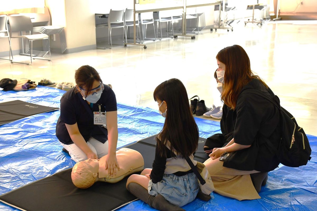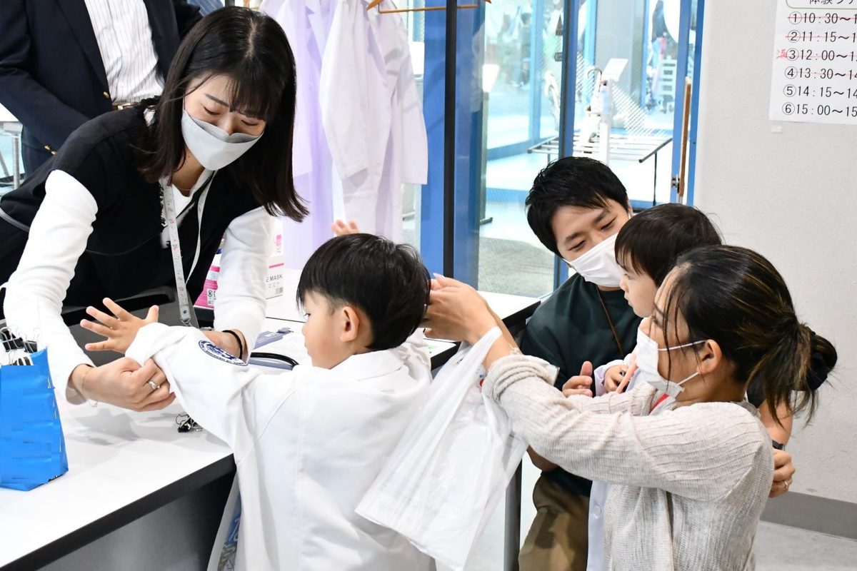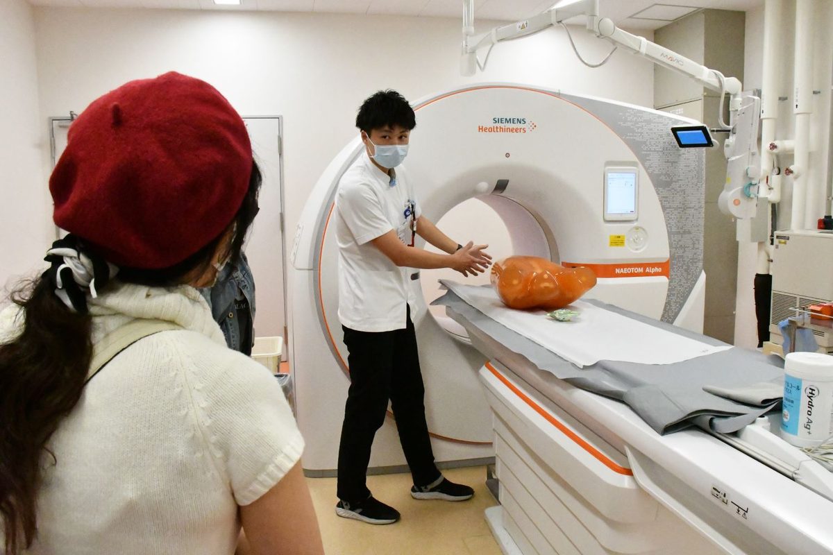 子ども連れで参加した家族は、「学生さんが優しく子どもに声をかけるなど、どこでも温かく迎えてくれてうれしかったです。BLSについて学んだり白衣を着てドクターカーの前で写真を撮ったりと、医学部らしい企画も楽しみました」と笑顔。初めて本キャンパスを訪れたという親子は、「付属病院の手術室や最新式のCT、MRIを見学できてよかった。医療機器の特徴をわかりやすく説明してくださって参考になりました」と感想を話していました。