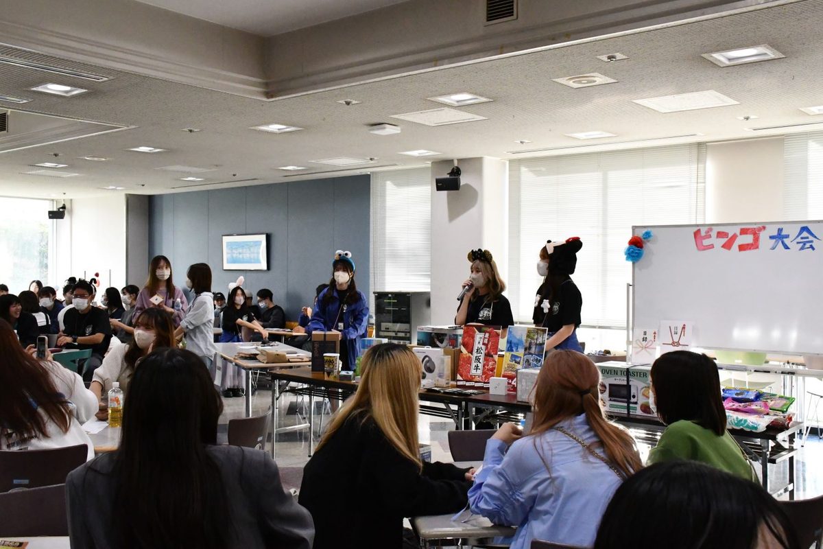 3日の開祭式では、実行委員長を務める医学部看護学科の益田都弥加さん(3年次生)が登壇。「4年ぶりに対面で実施できることをうれしく思います。ぜひ楽しんでください」とあいさつしました。3号館前には、学生とメディカルサイエンスカレッジオフィス(MSCO)の職員有志による模擬店や業者のキッチンカーが出店。軽音楽部は松前記念講堂でライブを開き、聴衆を魅了しました。人気芸人のスギちゃんとゴー☆ジャスが登場したお笑いライブでは、実行委員の司会で来場者とコラボレーションする質問コーナーやサイン色紙がもらえる抽選会も実施。多くの来場者が参加したビンゴ大会も大盛況でした。また、本キャンパスにある医学部付属病院の看護部や診療技術部、病院運営企画室、MSCOの職員らの協力で、病院ツアーやBLS(一次救命処置)講習会、医療従事者のユニフォームを着用した写真撮影会も初めて実施。本病院と連携して運営している小児患者の家族用宿泊施設「かもめのいえ」もブースを出展し、活動を紹介しました。