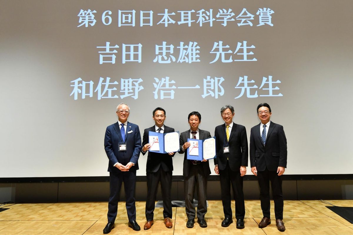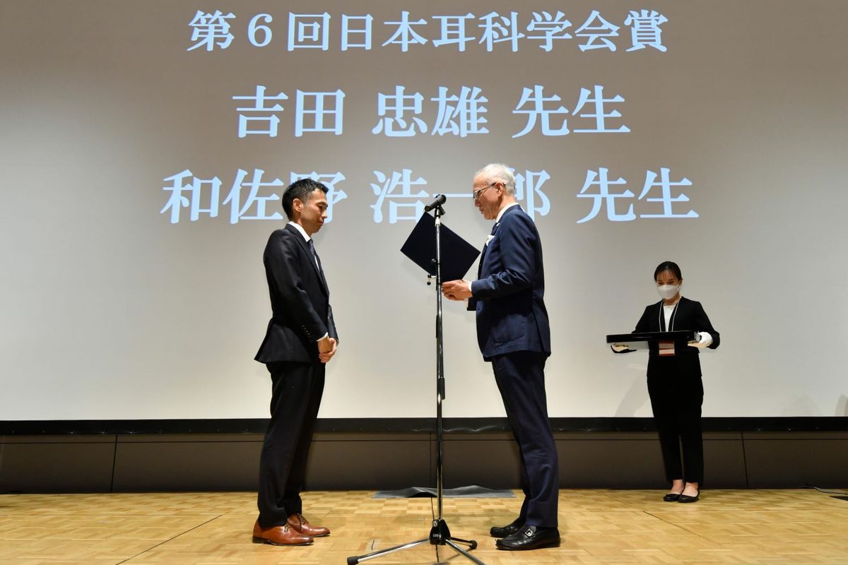 医学部医学科の和佐野浩一郎准教授(専門診療学系耳鼻咽喉科・頭頸部外科学領域)がこのほど、「加齢および遺伝子変化による進行性感音難聴に関する研究」で第6回日本耳科学会賞を受賞。群馬県で開催された「第33回日本耳科学会総会・学術講演会」期間中の11月3日に、授賞式と受賞講演が行われました。この賞は、顕著な研究・臨床業績を有し、将来、耳科学分野における指導者としての活躍が期待される医師・研究者に贈られています。