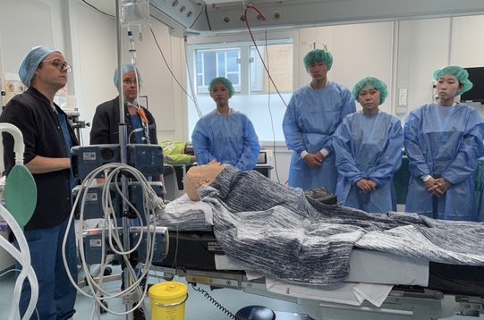 2名は、本学科の教員から日本の医療・看護制度や看護教育について学んだ後、キャンパスを見学。医学部付属病院では、高度救命救急センターや放射線治療室、外来化学療法室、集中治療室(ICU)などを巡って各セクションのスタッフから説明を受け、中央手術室では実際の手術を見学しました。また、小児病棟や新生児集中治療室(NICU)、母体胎児集中治療室(MFICU)も見学し、入院中の子どもの教育に関するレクチャーを受講。さらに、本キャンパス内にある付属本田記念幼稚園で幼児教育を体験したほか、神奈川県内のリハビリテーション専門病院や介護老人福祉施設、特別養護老人ホームを訪問し、高齢者に対する医療・福祉制度についても学びました。