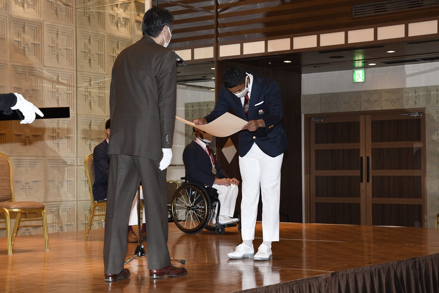 授賞式では、阿部知事から、「東京五輪・パラリンピックだけでなく、これまで積み上げられた努力に敬意を表します。皆さんの活躍は、県民に多くの感動を与えてくれました。今大会で目標を達成できた方も悔しい思いをした方もいると思います。ぜひこの経験を今後に生かし、さらなるご活躍を期待しています」とエールが送られ、県関係者らから大きな拍手を受けました。