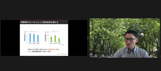 体育学部では2月19日にオンラインで、研究セミナー「競技スポーツへのサイエンスの活用」を開催しました。FD研修の一環として、本学部に所属する教員による最先端の研究成果を共有しようと毎年実施しています。今年度は、競技スポーツ学科の丹治史弥助教(陸上競技部駅伝チームコーチ)と小山孟志准教授(男子バスケットボール部副部長)が講演しました。