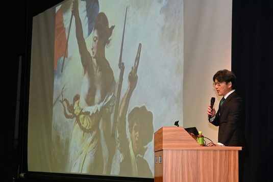 松浪教授は今年7月下旬から9月にかけてフランスで開催されたパリ五輪・パラリンピックを振り返り、「五輪とパラリンピックの公式キャラクターやロゴマークを共通にすることで、多様性を受け入れる包括的な大会を表していた」と説明。「音楽やファッションといったフランスの文化を表す開会式や環境に配慮した大会運営など、誰一人取り残さない社会をスポーツで実現することをテーマに掲げた大会でした。この目標が果たされたのかはすぐにわかるものではなく、大会のレガシーを基に、今後人々がよりよい未来を築いていくことが重要になります」と解説しました。また、難民選手のサポートやドーピング、トランスジェンダーの選手の対応、SNSでの選手に向けた誹謗中傷などに触れ、「スポーツにはその時代に起きている社会問題が顕著に表れる一方、解決の糸口となる可能性もあります。日常生活においても、身体的特徴や考え方などの違いを容認し合い、手を取り合う社会をつくっていくことが大切です。そして、スポーツにはその力があると皆さんには知っておいてもらいたい」と語りかけました。