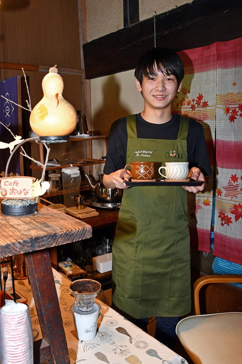中野さんは小学校6年生のときに村への意見や要望を提案する「清川子ども議会」に参加し、結の樹よってけし理事長の岩澤克美さんと出会いました。高校2年生だった2019年11月に岩澤さんがオープンした「古民家カフェよってけさん」で広報活動を手伝うようになり、20年4月にはその一角に「CAFEおはな」をオープン。各地のカフェを巡って独学で学んだ知識と技術を生かし、自身でコーヒー豆を仕入れて毎回2種類のコーヒーを提供しています。中野さんは、「中学2年生のときに職場体験で大手コーヒーチェーンを訪れ、テイスティングをさせてもらったことがきっかけでコーヒーが好きになりました。ただ苦いものだと思っていたコーヒーが、豆の種類によってフルーティーになったり、香ばしくなったりすると知って魅力を感じたとともに、いつかは自分でカフェを持ちたいと思うようになりました」と振り返ります。