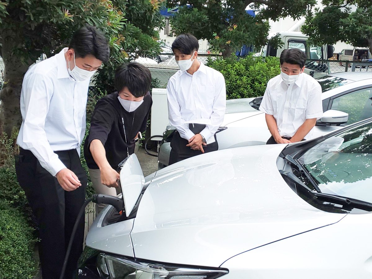 湘南電力では県や市、地域内外の企業と協働して、住宅の太陽光発電を進める「かながわ0円ソーラー」や蓄電も目指す「EVカーシェアリング」、災害時も電力供給を可能にする「地域マイクログリッド」などの先進的なプロジェクトが進められています。学生たちは、地域マイクログリッドについて、太陽光発電、大型蓄電池、地域系統線などを組み合わせたシステムを現場で見学するとともに、EVカーシェアリングの利用も体験しました。
